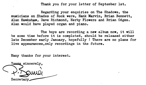 Those of you who have been involved with researching the Shadows' history will attest that there are errors in both the BBC and EMI archives / documentation as to who played on certain sessions.