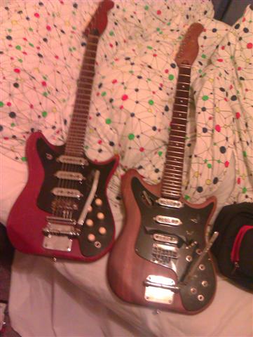 PS- my '62 Fenton Weill Stereomaster has LOADS of paint missing from the base, fag burn on the headstock, initials carved on the back (jc 4 ab) and 'peace, love' scratched into finish- not to mention the usual forearm wear, and a bunch of paint gone wheree the strap has rubbed on the horns. My favourite thing about it though is all the checking- the nitro cellulose paint is cracked into thousands of pieces and looks a hundred years old. Love it! ;)