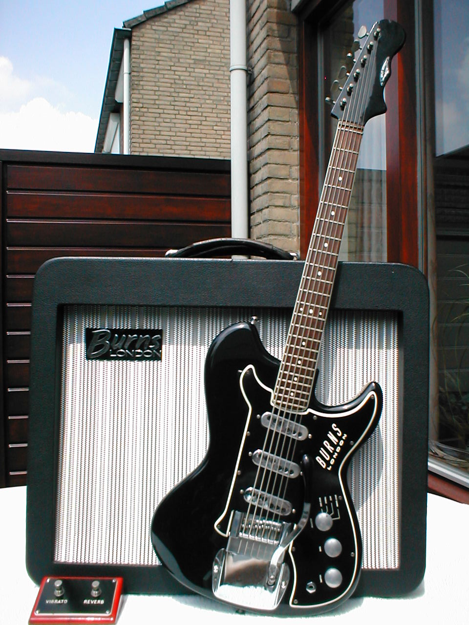 I agree. It is definitely a Burns. Initially I thought it a regular 6 string but can see he is playing the bass lines on it so assume it must be a 6 string bass. I remember the Burns 6 string bass of that era was basically a converted standard 6 string guitar with a regular scale length.