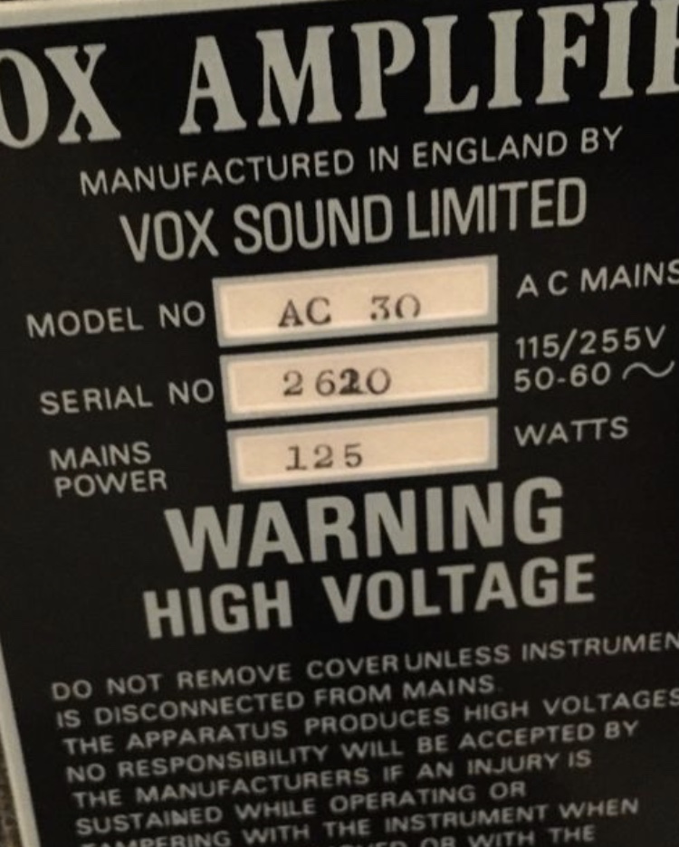 I believe the following Vox Ac30 Top boost is a Dallas Arbiter mid 70’s. It has a diode bridge instead of the tube rectifier and is hand wired. However the serial number is a bit odd being only 4 digits? I thought it should be yearmonthDSerialnumber. Hoping someone can help.