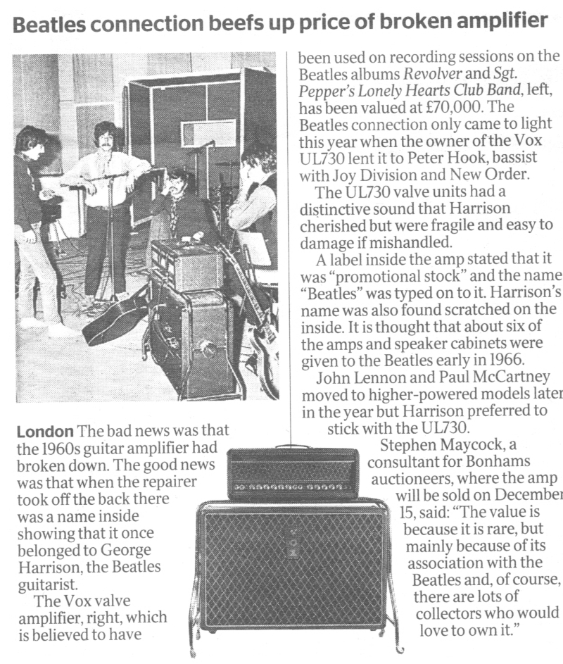 John used it extensively in 67/68. To keep the Three AC 30's look' he used it with a FB212 cab and for cabaret appearances it was placed out of sight behind the drum riser!!