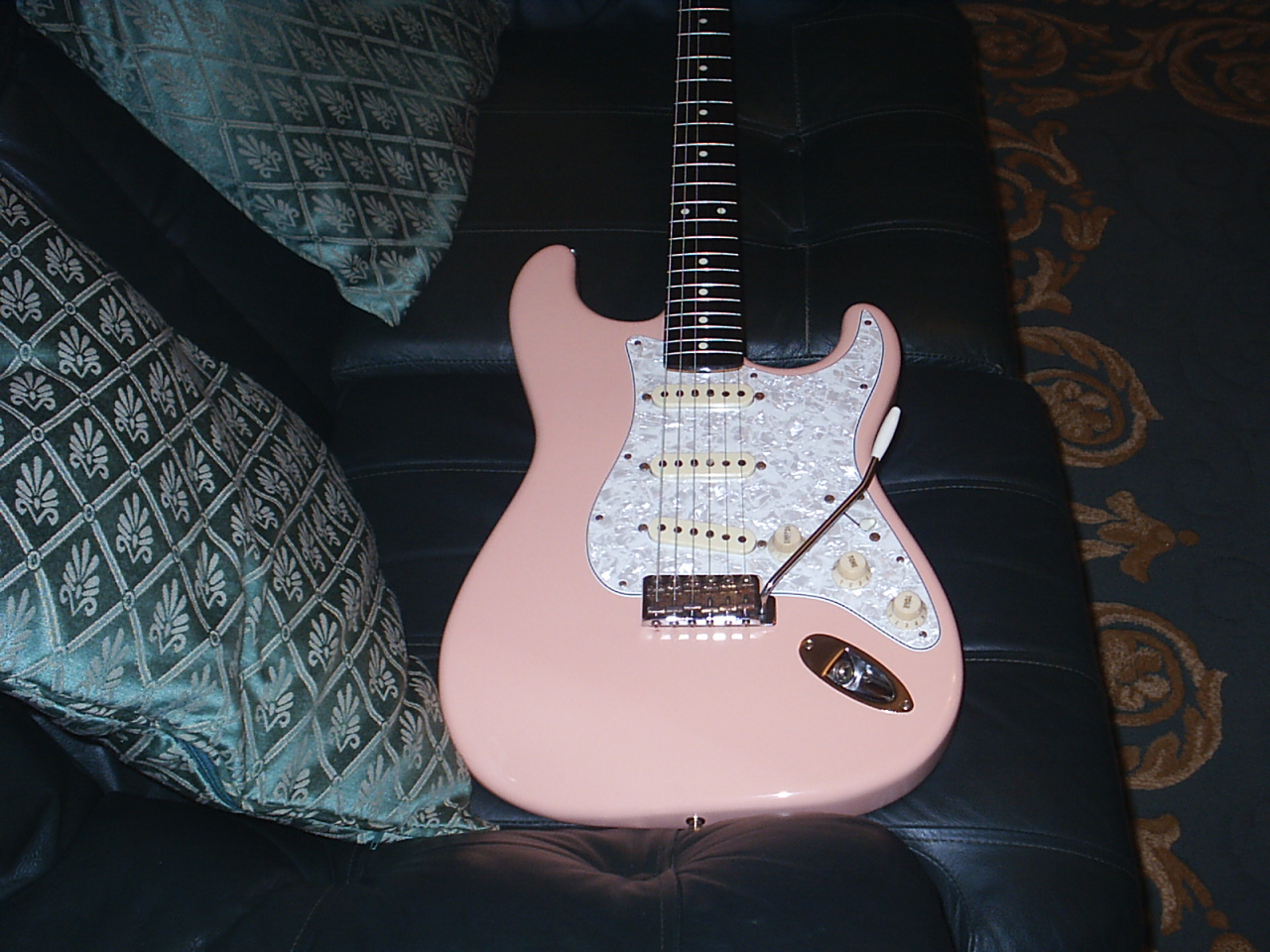 Yes, it's a genuine Fender colour, but ......... SLP stands for 'Shell Pink'.