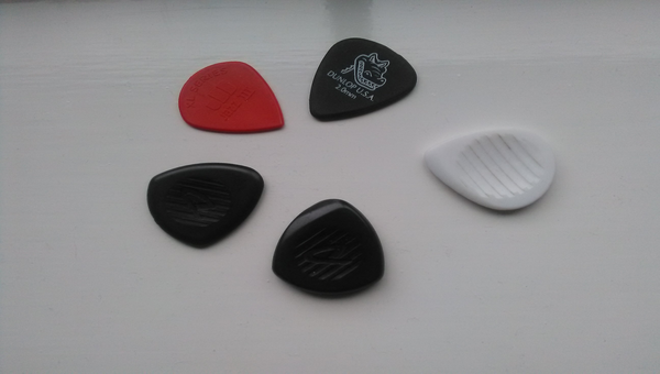 I don't know what picks Hank uses for gypsy jazz, but Wegen and Dunlop make picks 3mm or 5mm thick aimed at this style of playing! Personally I've been using Dunlop 2mm with a rounded tip for GJ and Dunlop Jazz 3 XL (the red ones) with a more pointed tip for Shads style playing. I found the George Denis picks gave a different tone (thinner) and wore quicker.