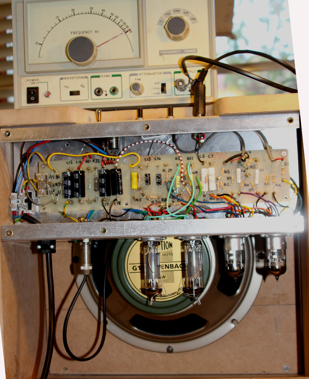 It amplifies a 1khz sq. wave from the signal generator albeit ( I love that word ) with an almighty 50hz hum.