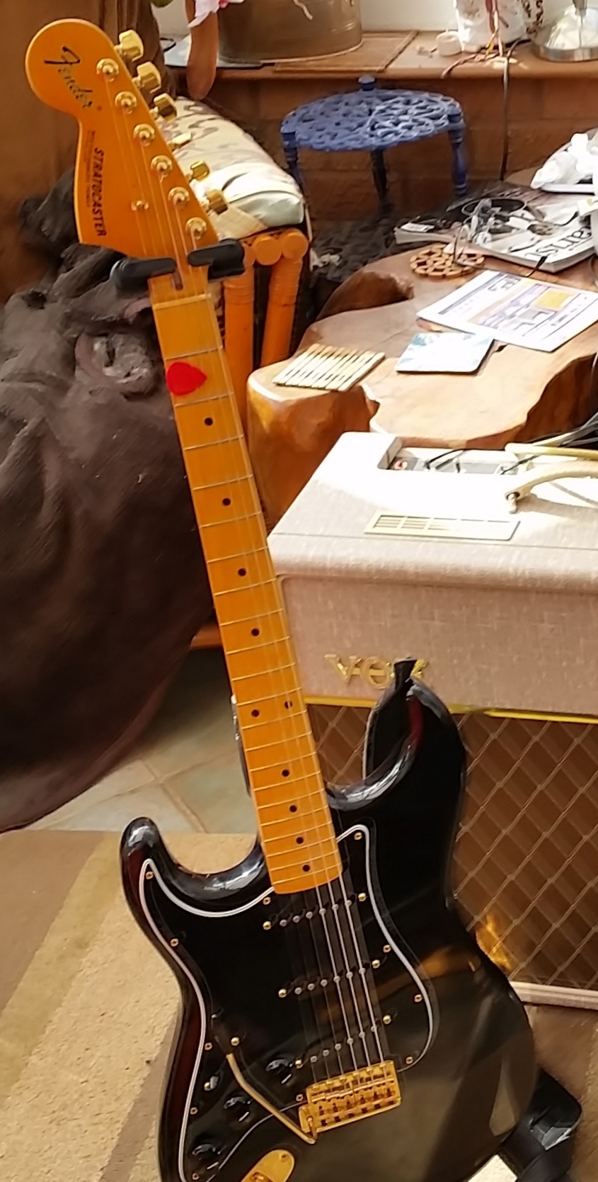 Hank's 70's Stratocaster had gold hardware and a maple neck.