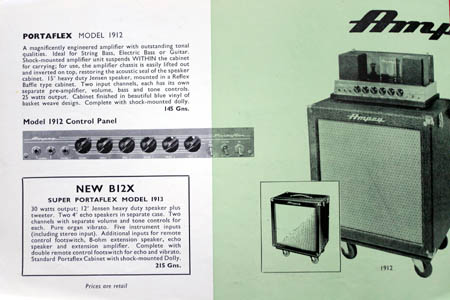 Of course, both of these UK efforts were copied (that's not too strong a word) from the American Ampeg Portaflex amp, which came in 25 watt 1 x 15 (6V6) and 50 watt 1 x 18 (6L6) designs.