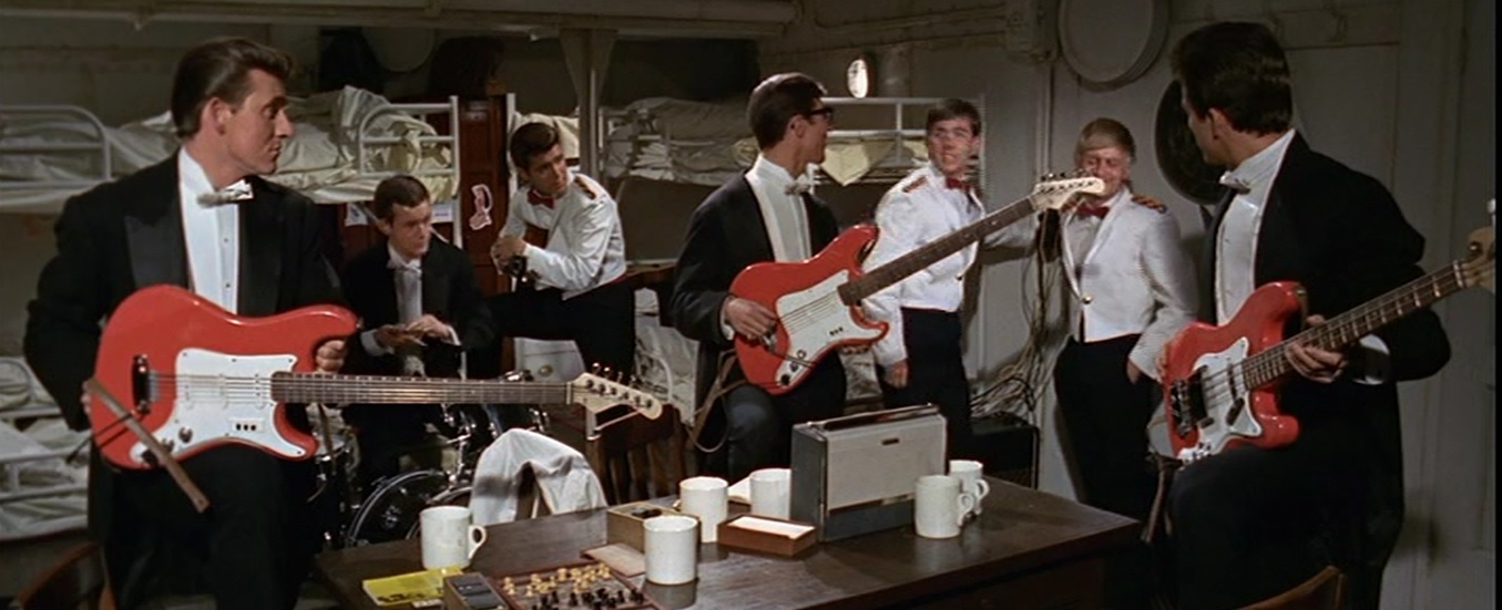 JimN wrote:Looking at them again, those red "Vox" guitars could well just be non-working props. The scale-length on each of them looks long enough to be a baritone or six-string bass. And the very compact bridge/trem unit is not a design seen on any Vox guitar on the market.