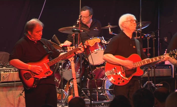 You made a good choice. They are well-made and well-finished guitars at, as you say, a quarter of the Gretsch price. I chose the AFS75T in Transparent Red and here it is at the Pipeline Convention, with Jim Nugent digging some carefully-crafted notes out of his Fender Bass VI and Martin Verrill deciding which of Timothy Jackson's drums to hit next.