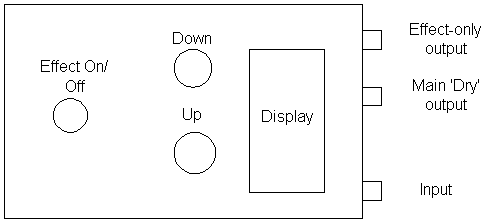 Amongst its effects it needs to have both echo and reverb, with the different effects selectable using the Up and Down push-switches and the name (or number) of the effect shown on the display . There needs to be an On/Off switch (or a variable pedal) for the effect.