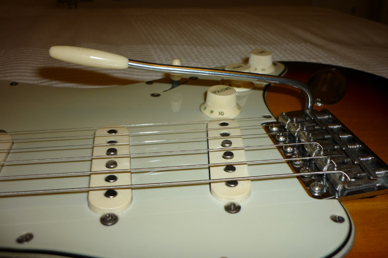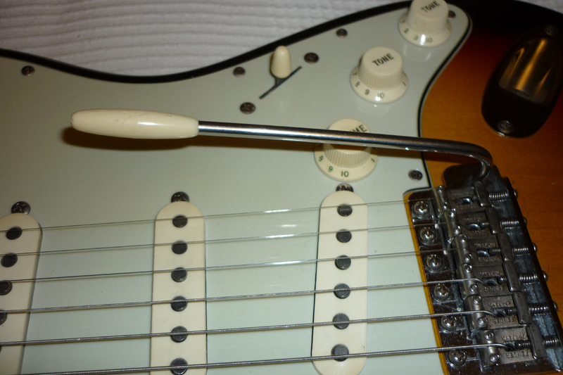 This is what seems to have become the standard shape for a generic Stratocaster tremolo arm (on everything except the full-featured American 1962 Vintage Reissue). It is based on the original 1954 design rather than on the (IMHO, improved) '1960s' shape used by Fender from 1959 onward. I particularly do not like the feel implicit in the way the original arm stays close to the body for most of its length and then gains height via the bend only a couple of inches from the tip. I definitely prefer the later shape.