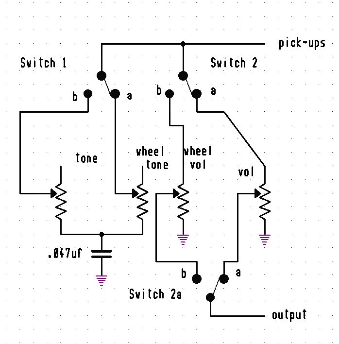 The tone switch does the same so that you can have the vol and tone as normal or the wheel can be the vol or the tone or both.