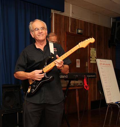 This is Graham Hyde performing at The Surrey Shadows Club, Graham has also played a big part in the Children In Need ( Reading ) event tomorrow 20/11/09. As you see on his shoulder is a red pair of ladys do da's (Fiesta Red!!!!!)..........How they got there I have no idea, but it looks fun............... .