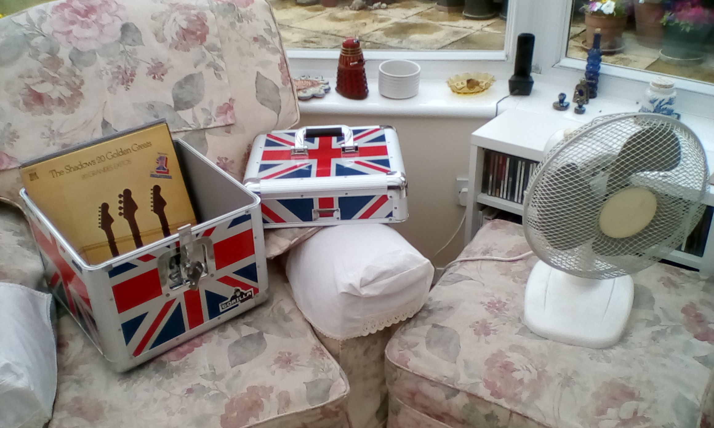 I've just got to about the two thirds point in the sorting out of my records and putting them in my big Union Jack (it's raining and we're almost floating!) box and the smaller cardboard one. I didn't realise it would be so tiring! Will add some photos...
