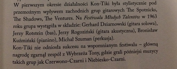 My interest piqued, I noted the name of the band…Kon-Tiki… So flicking through, I came to the chapter about them and lo and behold, they were influenced by The Shadows, The Ventures and The Spotnicks.