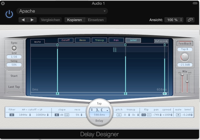 In the Logic Software it's easy to build an echo machine with variable head-positions by "Delay-Designer".