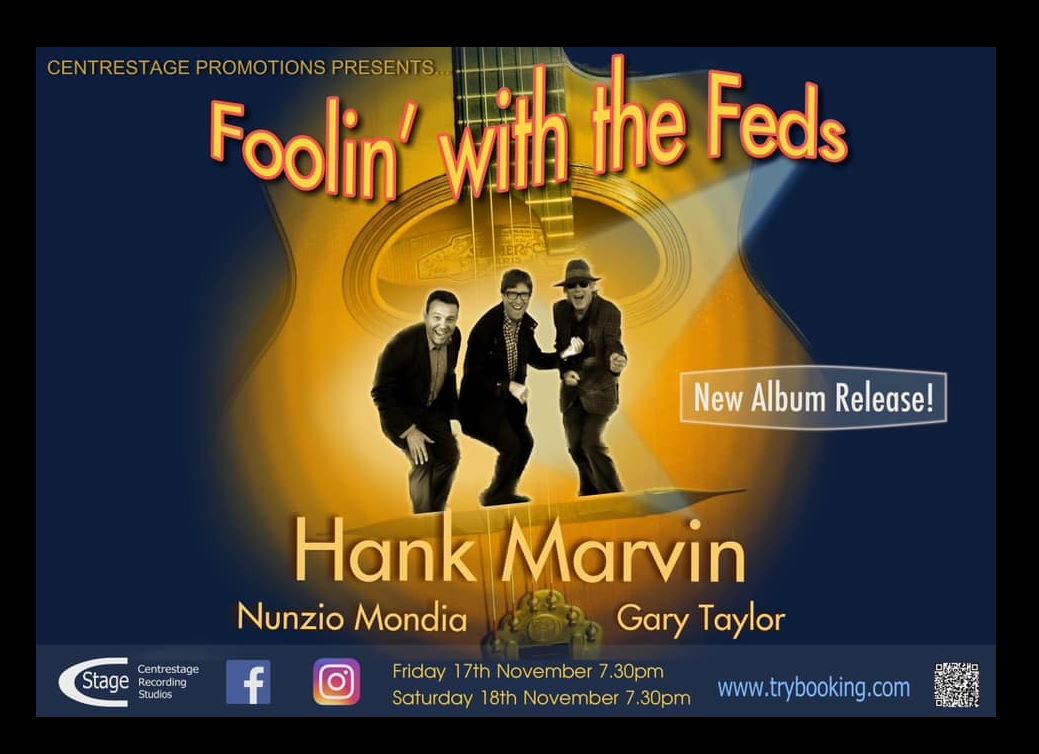 Exciting news everyone! Our latest Hank Marvin Gypsy Jazz album "Foolin' with the Feds" will be exclusively available at Centrestage Recording Studios.