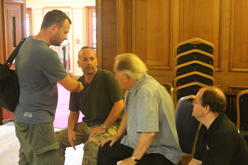 Here's a picture that has just been sent to me; myself (sitting down) talking to Brian, just before the KPM gig in Islington. If my memory serves me, it was 2012. Almost eight years ago! Can't believe it! A great night.