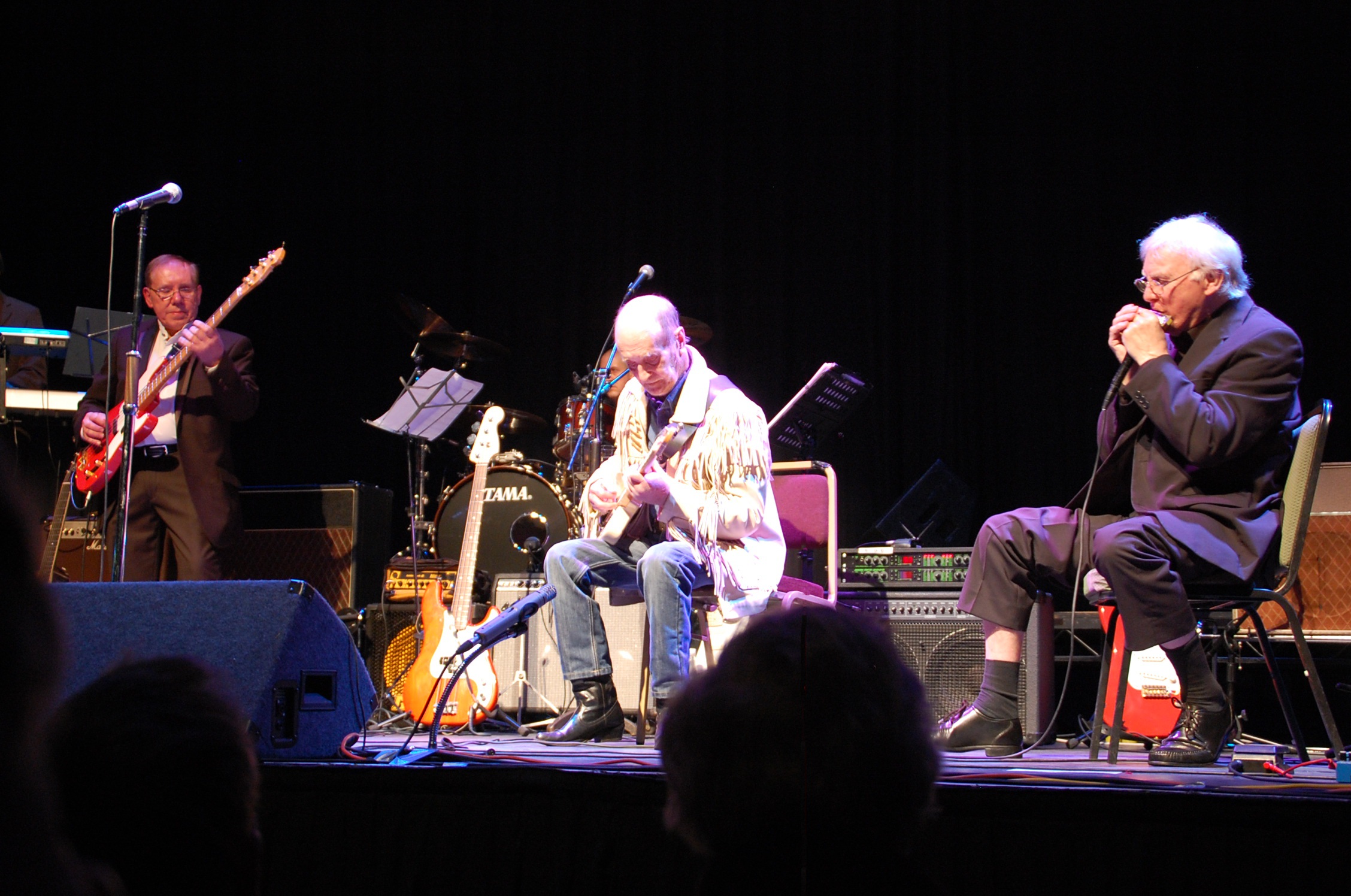 Photo by Barry Gillam of Jet Harris, Brian 'Licorice' Locking' & Alan Jones at Ferneham Hall, Fareham 5th February 2011.JPG