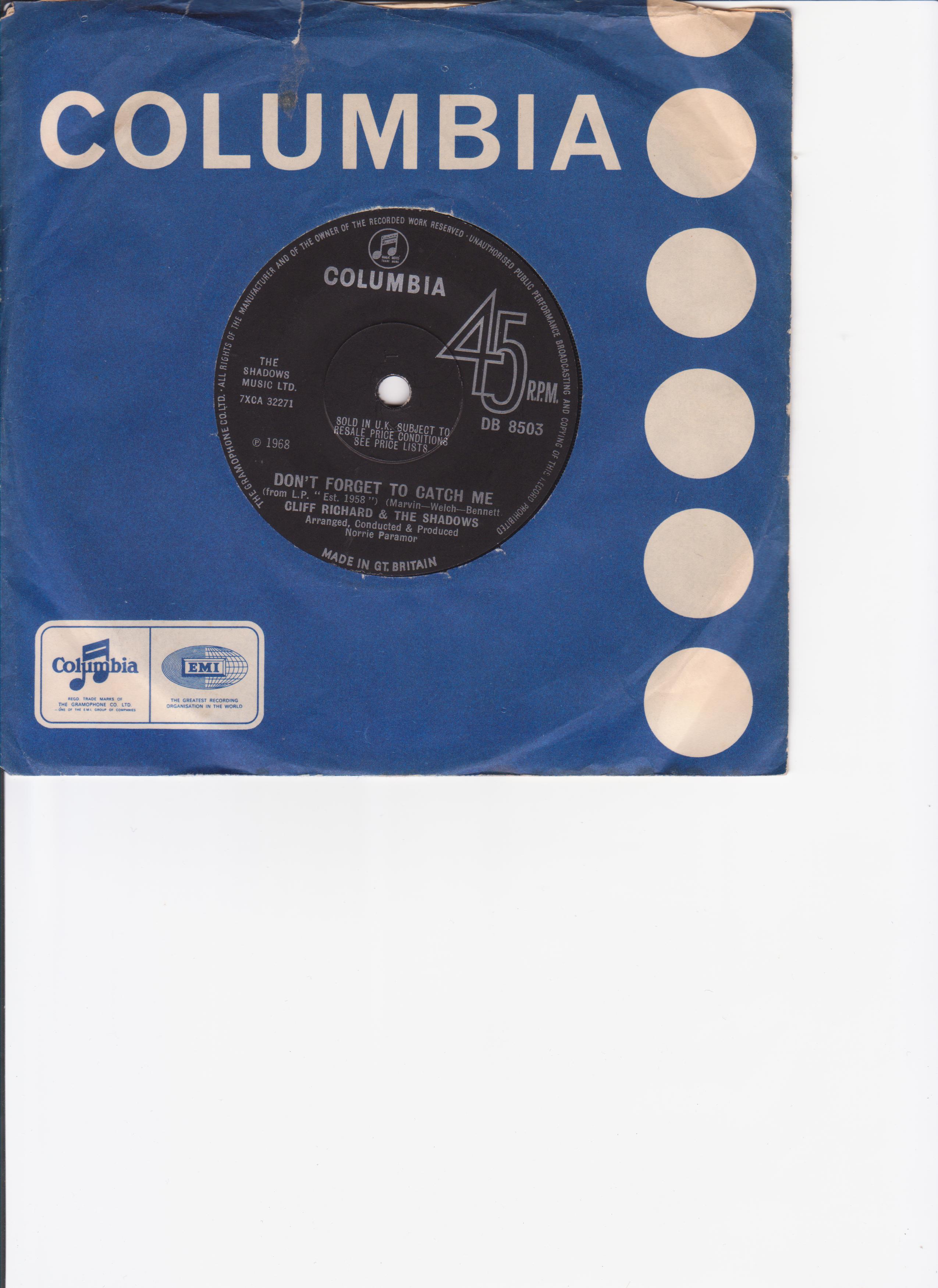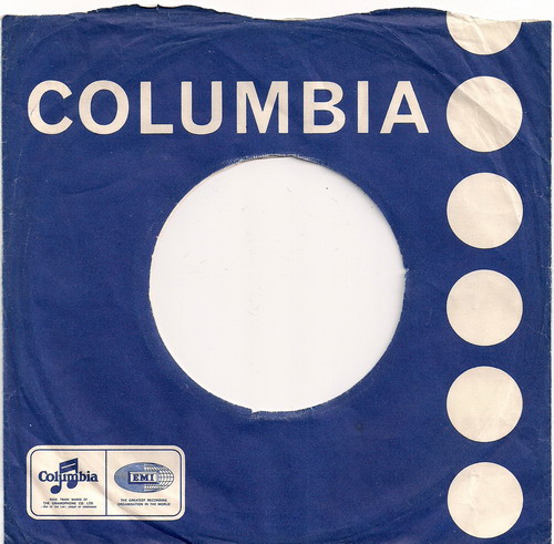 This is really interesting (no I'm being serious!). My copy ofthe 1968 single Don't Forget to Catch Me by Cliff & The Shadows (with the lovely Fletcher, Flett song What's More (I Don't Need Her) on the flip) is in a blue Columbia sleeve - with adverts for From HBB&J, Cliff's Good News LP, Pink Floyd etc. on the back.