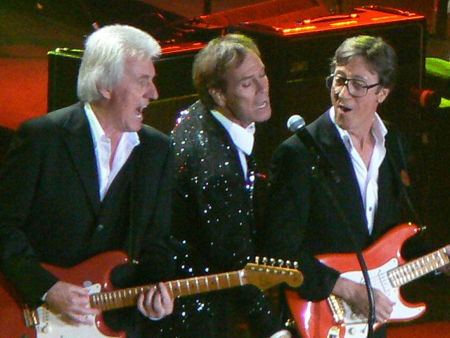 Anyway; I loved the way in which they did two shortish sets - one in each half. Much better than just one long set, in my opinion. It meant that you saw them twice (on their own) in one night, spread the tunes out a bit more and, of course, gave Cliff the chance to nip off and change his clothes!!! Wish I could have done that half way through, what with all the sweating!!! The choice of numbers was good, all the classics, which, let's face it, everyone wants to hear and will help to sell the DVD. Plus of course, as the Shads didn't take their Final Tour to Aus/NZ/SA, it means that these guys get to experience at least some of the magic that we all enjoyed in 2004/2005. The numbers were played as well, if not better, than I have heard them before. No lack of enthusiasm. Only two disappointments: 1) I had hoped that Brian would play Little B. Still, I guess that would have been too self-indulgent for a show that is, after all, about Cliff and the Shads as a unit. I had been preparing my hand-clapping techniques for the audience participation bit all day. Oh well, maybe it saved me from any embarrassment. Seriously, Little B - always a highlight at any Shads gig, but maybe this one was not the time or place. Fair enough. 2) Oh well, I'll admit it; I have finally given up hoping to see them play Love DeLuxe live!!! What do ya mean, it wasn't one of their better singles! First one I ever bought and it still sounds great to me!! Sorry if I have spoilt things for anyone else who was also hoping to hear this. What do ya mean, I'm on me own there?!
