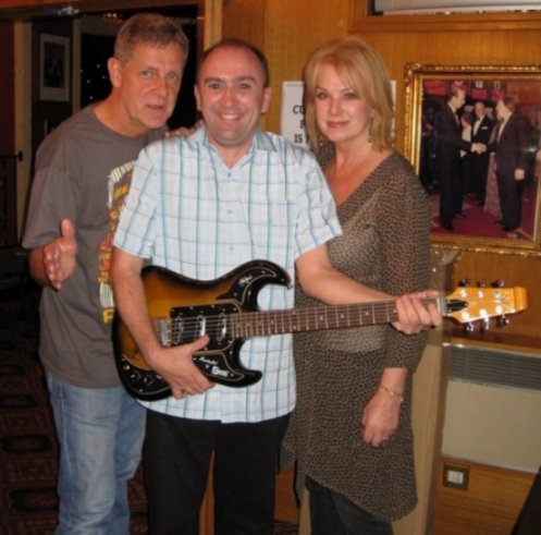 Here is a pic of the winner of the 1st Prize in the raffle being presented with the Burns Marquee 6 guitar by Barry Gibson and Janet Hemingway. I'm so sorry but, in the rush at the end of the evening, we didn't manage to get the name of the person who won this great prize. If anyone knows the person's name please can you tell us! Many thanks.