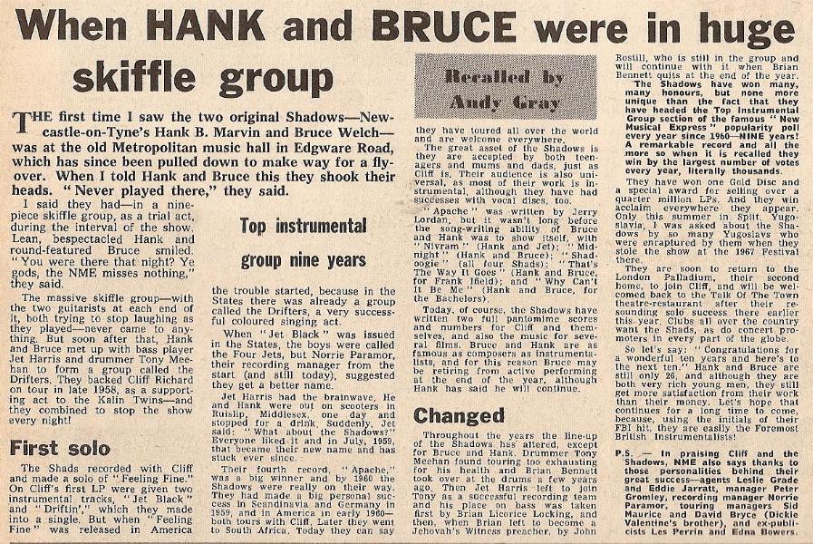 When Hank and Bruce were in huge skiffle group Recalled by Andy Gray