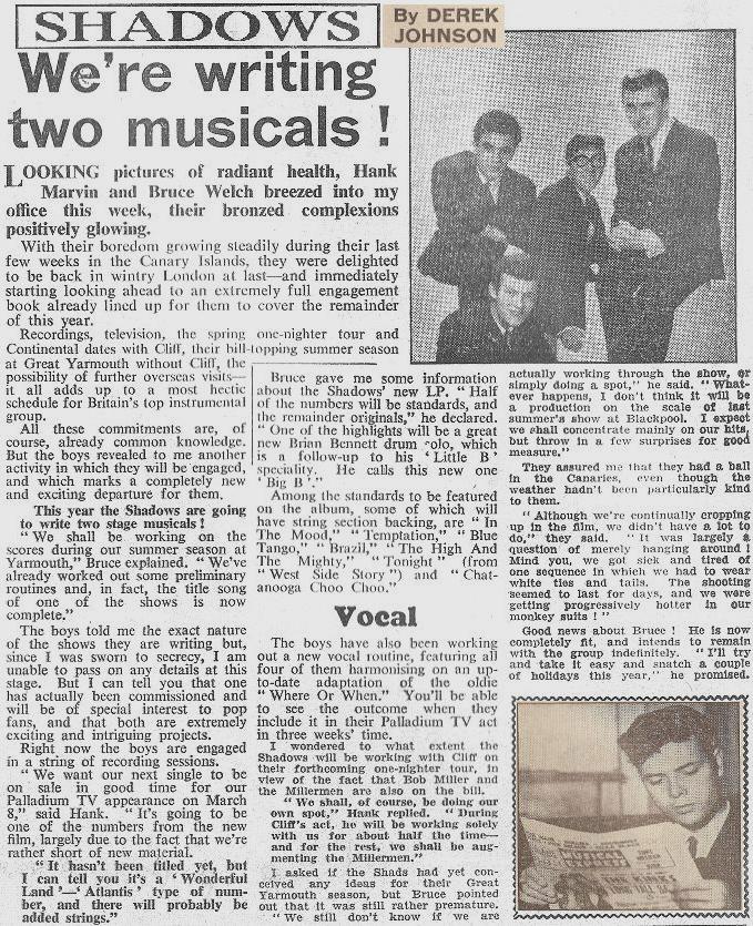 SHADOWS WE'RE WRITING TWO MUSICALS !