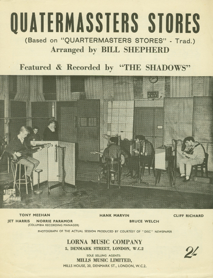 There seems to be a misunderstanding about the drummer on this picture. The origin is from the sheet music of "Quatermasster's Stores" and as you can see the drummer is given as Tony Meehan. As the sheet music has most likely been published near the release of "Apache". If the comment about the photo being taken on the actual session is true this would mean the 17. June 1960.