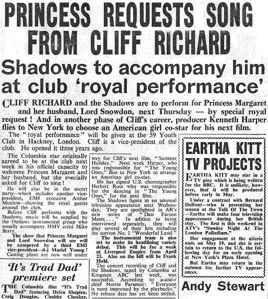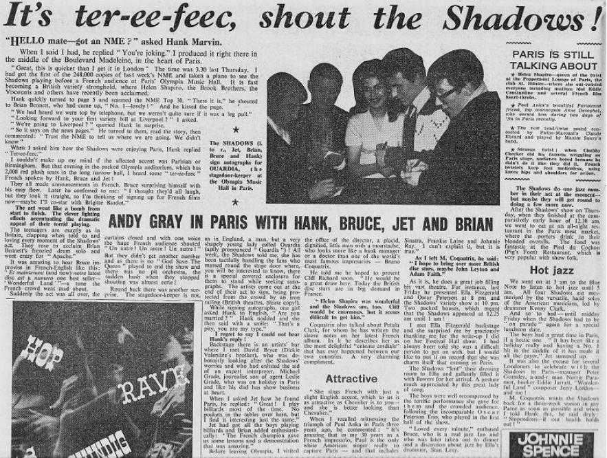 The Shadows at the Paris Olympia 1962 (13 to 19 March)