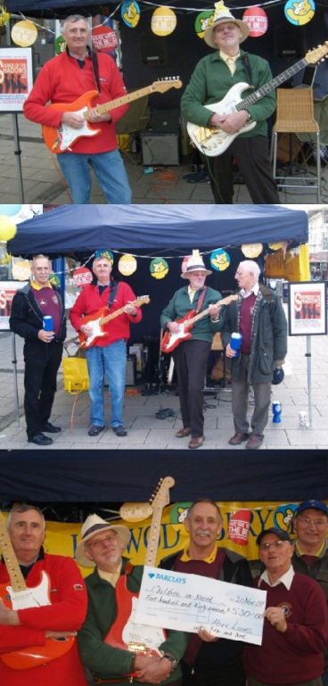 After the dreadful weather of the earlier week, we were greatly relieved when, for one day only, the rain and wind went away, permitting Ken Gilbert and myself to go ahead with our Aberystwyth Children in Need event. For the second year running we performed Shadows (and similar) music for the people of Aberystwyth, this year right in the town center and with the expert fundraising help of the local Lions club. We played from 11.00am to 3.00pm, non-stop, and in those four hours, the public put an amazing £530 into the Lions' collection boxes. With £20 which we had been given before we even started, that made a thumping £550 on the day.