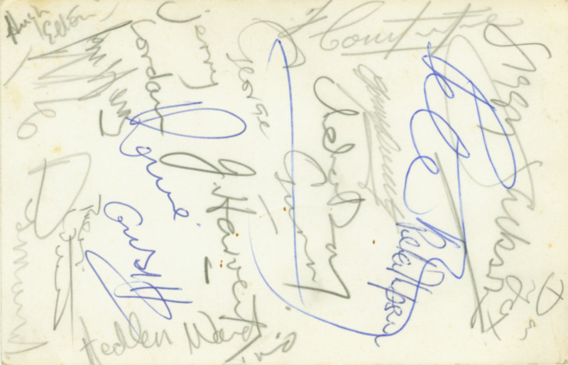 Unfortunately I am unable to identify the players of the pictured team individually except Jerry Lordan. The postcard has quite some signatures on the back side which might be helpful to identify them.