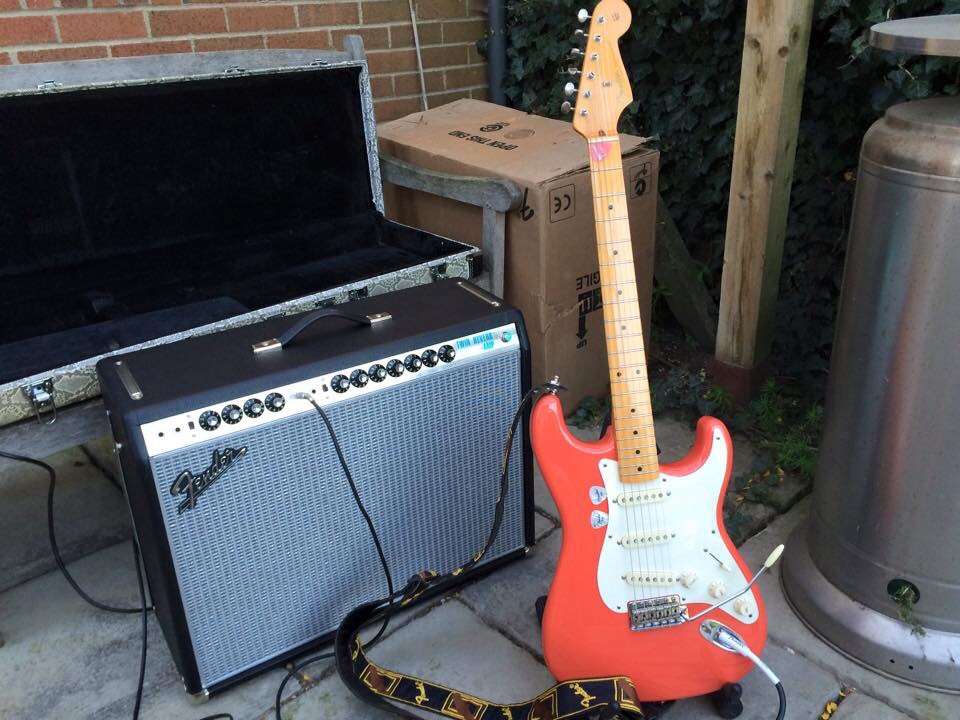 Currently running a MIM '58 re-issue Fiesta Red Strat, with maple neck, Fender '68 Twin Reverb and a Zoom 508