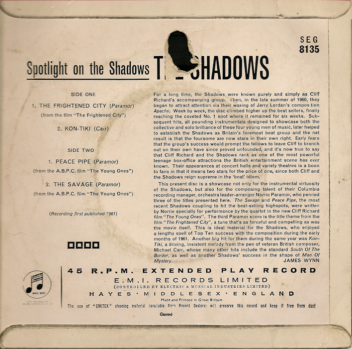 Shadows EP SEG 8135 Spotlight on the Shadows
