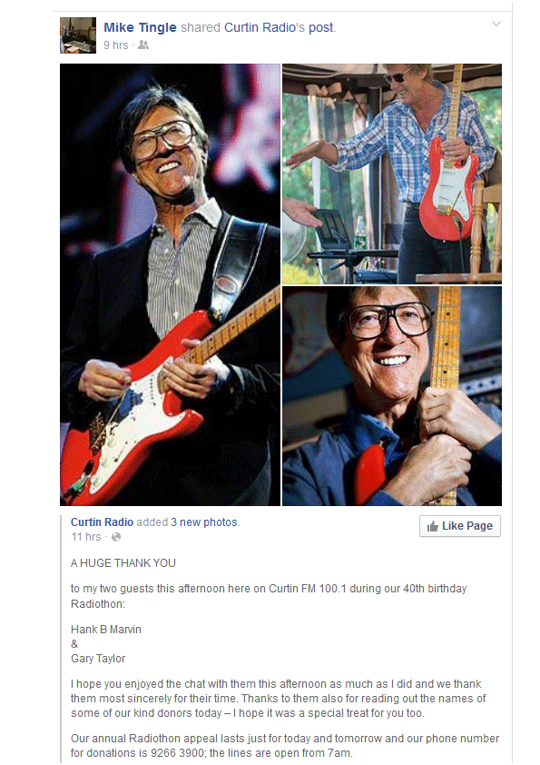 Hank Marvin and Gary Taylor were interviewed on Curtin FM Radio yesterday.