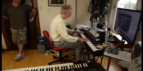 As a matter of interest, in the background of the 2nd shot is the 'tower' containing all the electronics for his Synclavier keyboard. Sadly, we never got to hear this working!