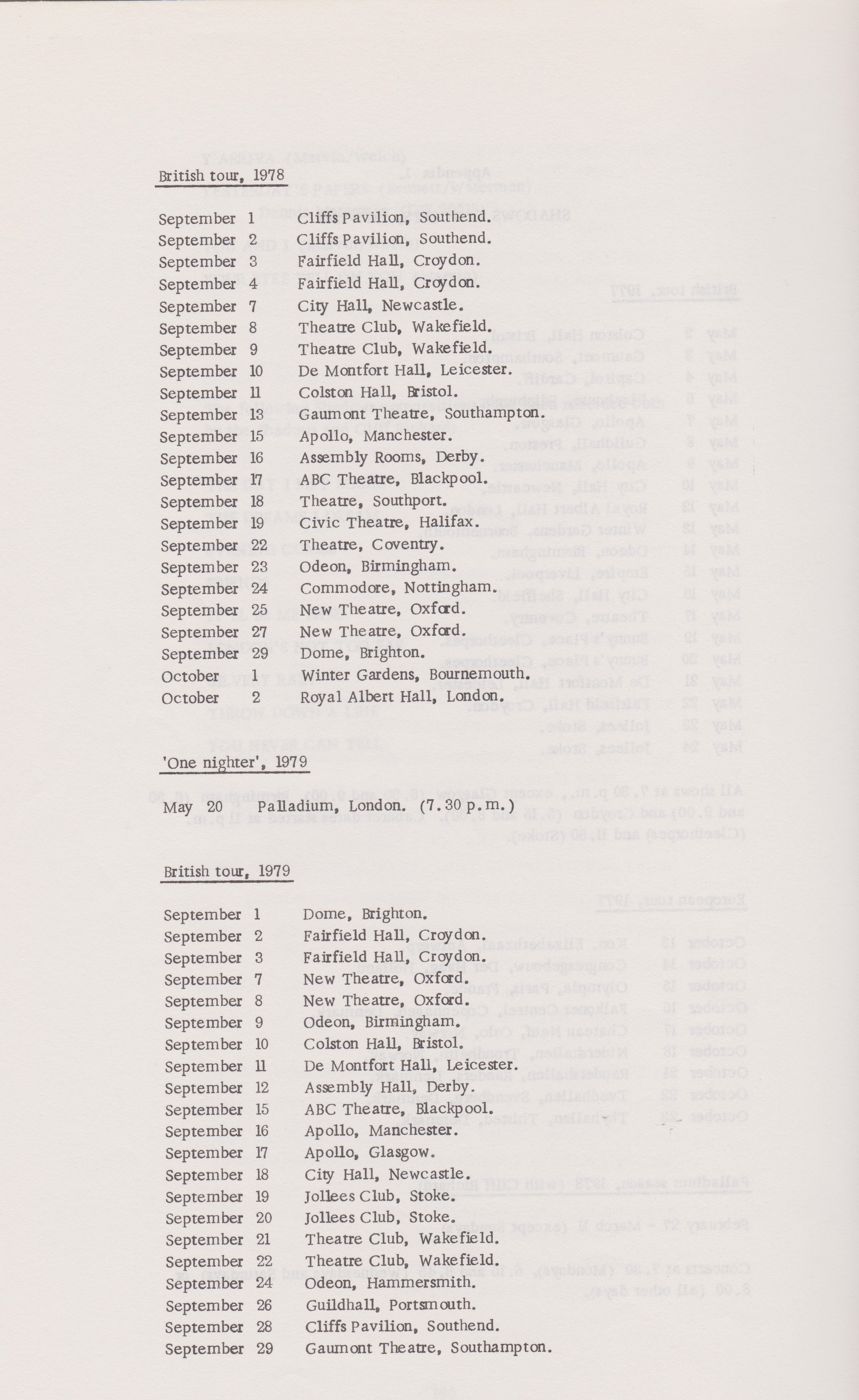 Thing-Me-Jig wrote:Is there anywhere online where there is a list of tour dates for the group from 1963 to 1979, please? I'm trying to fill gaps in my lists but am failing. I've fortunately found lists on this site for 1962 and before and 1980 to 1990 which have helped plug some gaps. Any help would be much appreciated