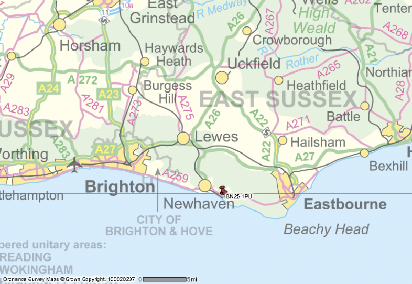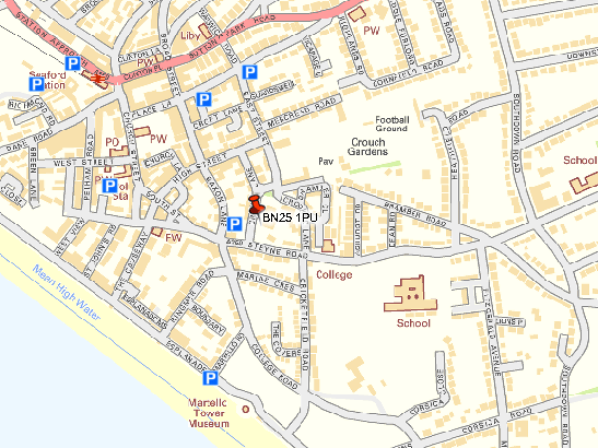 Seaford is on the A259 east of Brighton, just beyond Newhaven (maps attached)
