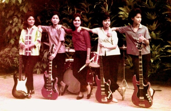 I suggested to Rosemary that a thread on the topic in the general section might draw interest. Having a little time tonight, I thought I might start such a thread with this photo, taken in the early 1960s, of an all-girl band The Peppermints. They played mostly Ventures pieces, as that was what was popular here, and of course some Shadows pieces too.