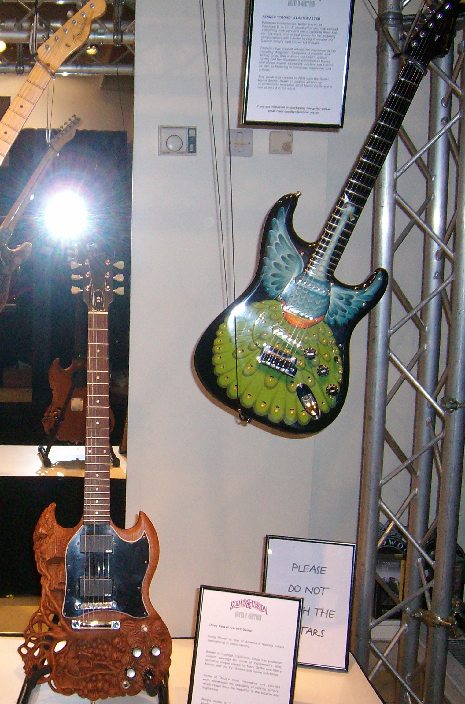 OK Guys (& Gals!). I'm not a real expert on guitars - but a private collector had these beauties on display during the evening. They are all either extremely limited edition models or unique one - offs. Please don't ask me any questions about them - because I probably can't answer them!! You may be able to read parts of the notices / text which was near them. I didn't have time to make detailed notes. Just thought that the guitar aficionados out there might like to see them. I should add - that these guitars are potentially for sale.....for the right price!!! Any proceeds would go towards Cancer Research UK. If anyone is seriously interest I can probably find out more details for you.