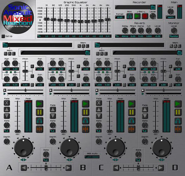Features: Four 16/24-bit Wav File Players 16/24-bit Wav File Recorder Stereo 10-Band Graphic Equalizer Stereo Reverb Independent Switchable Monitor Output (VST host/Soundcard Dependant) 4 Low/High Shelf Filters Manual/Auto Load File Memory Manual Entry/Tap Tempo BPM Calibration