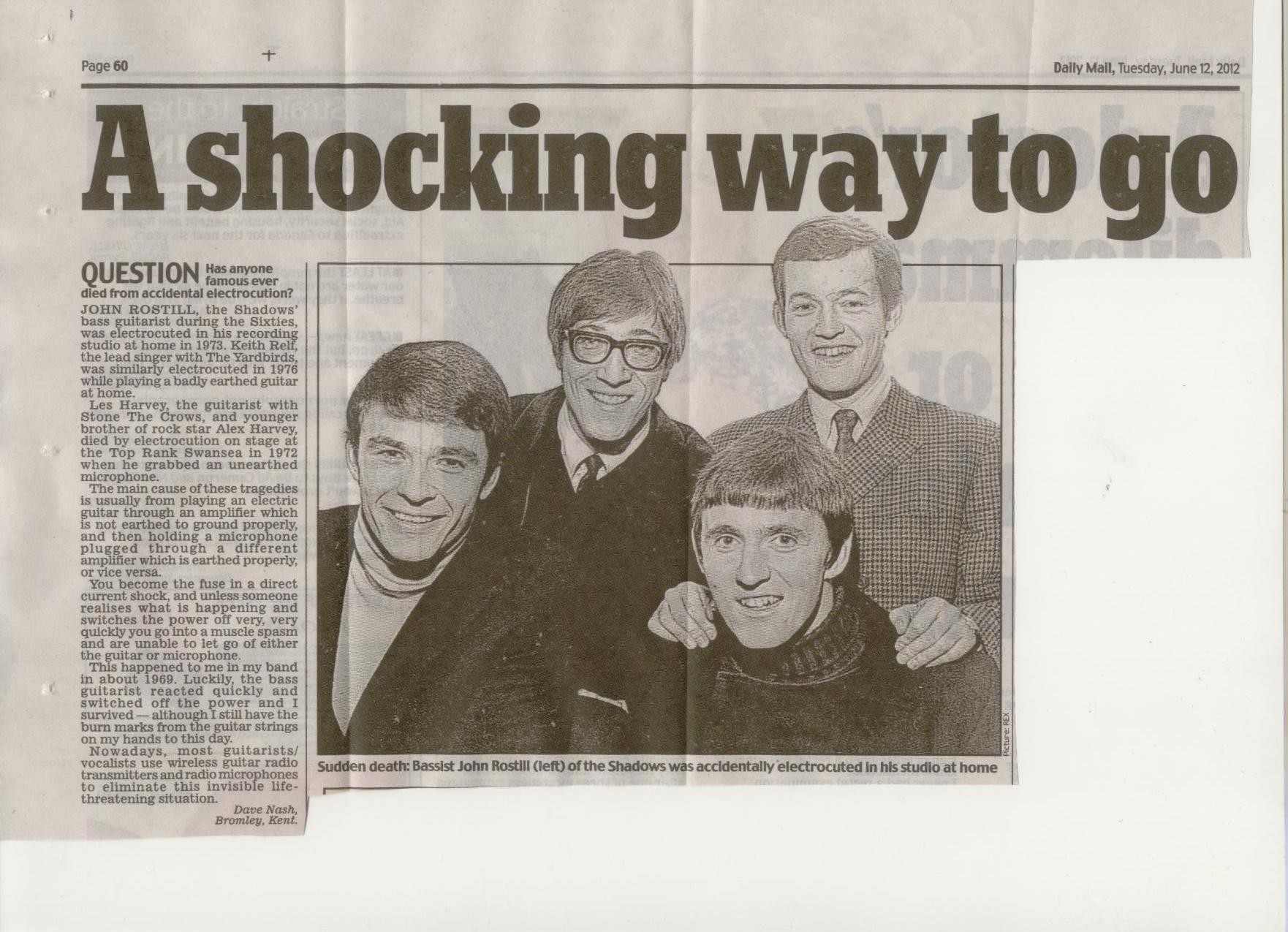 "ON THE SHOW 2 NITE: Remembering the 70th anniversary today, of the birth of one of the Uk`s greatest bass-players, the late JOHN ROSTILL, with some of his best licks with THE SHADOWS and CLIFF. Plus: CHUCK BERRY/ROBERT GORDON/RICKY NELSON/BILLY LEE RILEY/WANDA/WEBB PIERCE/BIG TOWN PLAYBOYS/BERNIE WOODS/RUDY LA CRIOUX/RUSTI STEEL/BOYD BENNETT and more. `The Saturday Night Rock n Roll Party`: All BBC stations in the West & Southwest, On-line & Listen again. 8-10pm (http://news.bbc.co.uk/local/wiltshire/h ... 149795.stm) & other stations.