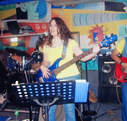 Here I am at one of our early shows, on bass duty with my beautiful blue bass guitar.