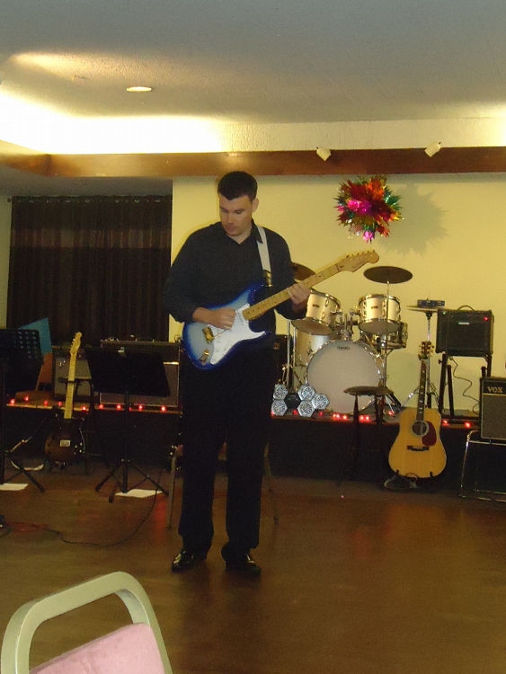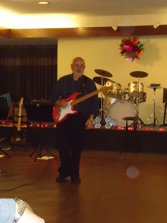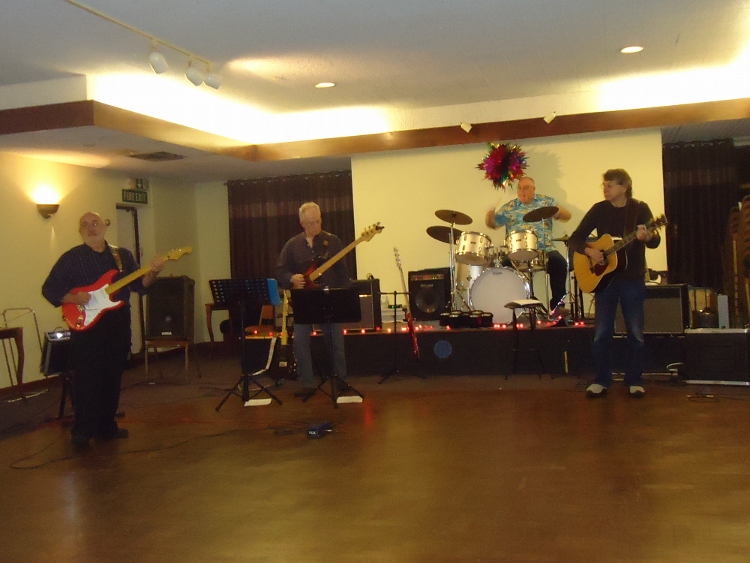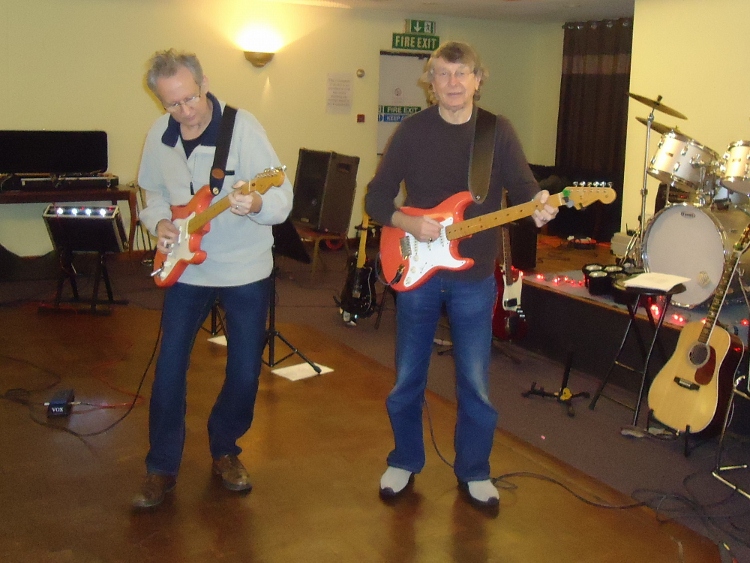 A small unknown club, Burnham-on-Crouch Friends of The Shadows Guitar Club has been running for five years now under the 'management' of 'Big' Rick Fitz-Patrick (ex drummer with The Saddows & The Instro-Mentals). We meet on the first Tuesday of the month, sometimes with only a handful of people but last night Rick organised a Christmas Party (with raffle & buffet) with my band "Alive & Kicking" providing live music and enabling a number of ad-hoc bands to form. There was a good turn-out & we must all show our gratitude to Rick for all his had work & tolerance (!), especially considering his health hasn't been the best recently - Good on yer, mate!