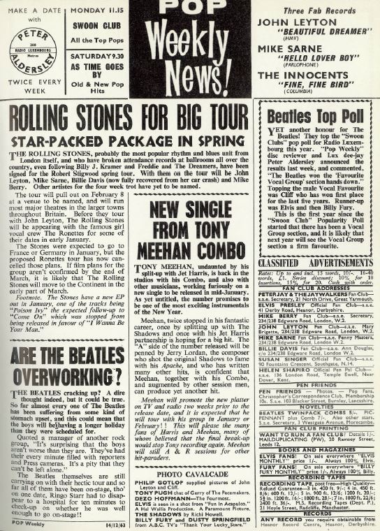 From the 14th December 1963 issue (no.16) of Pop Weekly, but no sign of any pictures in this or succeeding editions of what was essentially a studio band.