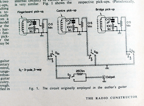 Can you please confirm my memory of my VA which I had in the '60's- IIRC the main pickup selector on the upper body bout was a three position blade type switch (i.e. Strat old type) which gave the neck pickup alone, all three pickups and bridge pickup alone respectively. So when the switch was in the middle position, by using/mixing the individual volume pot settings, any combination of pickups could be obtained..