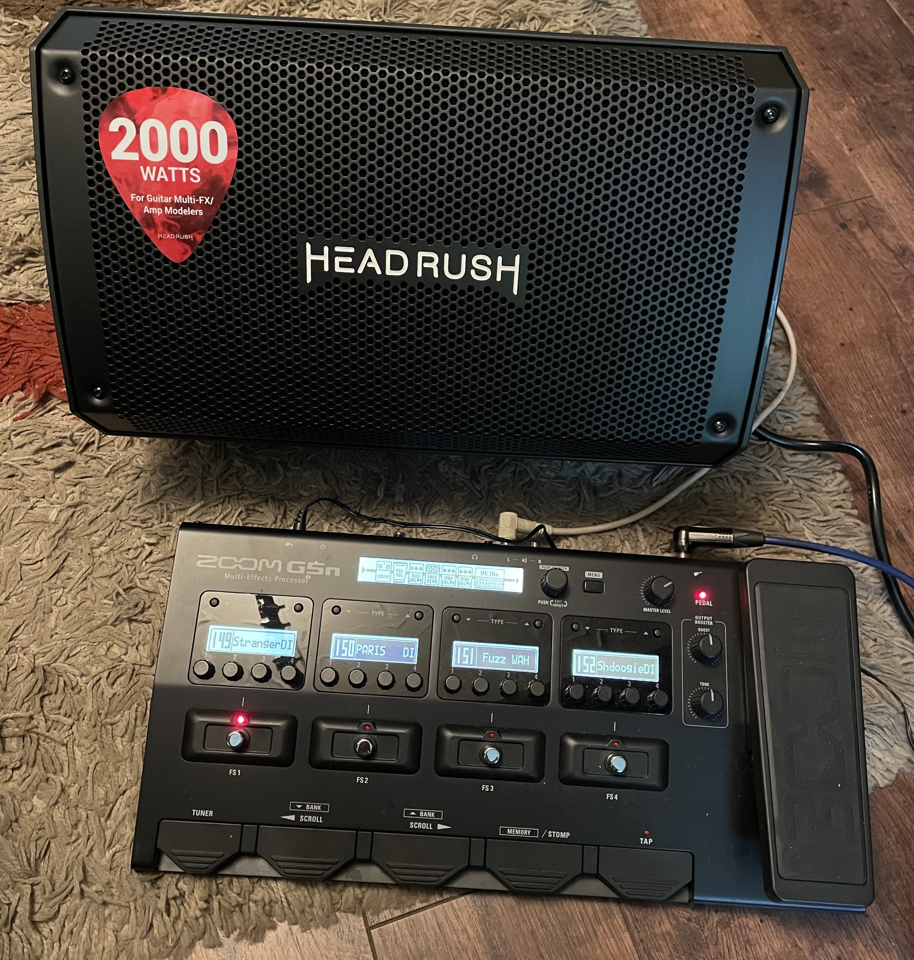 Thanks largely to Adrian Fountain who plays in our band, I tried the Headrush FRFR 108, 2000w active speaker with my Zoom G5n and was absolutely amazed at what came out of it. At a cost of £195 it easily equals the sound I'm getting from any of my other amplifiers, including the new Fender Tone Master at almost £1000. Because it only employs one high power eight inch speaker and a tweeter, it is a quarter of the size of the Fender amp and weighs 19lb. I must admit, when Adrian showed it to me last week I laughed and almost ridiculed the idea - until I heard it. I went home and immediately Googled it, read about it and ordered one.