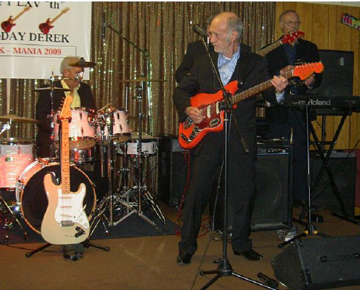 Just found this from earlier in the year at my birthday bash,Jet Harris kindly joined TheShadders for a few tunes...........And on keyboards you can see our new home builder Bob Dore..............( On Drums is Nobby Glover)...........On a high was me..........