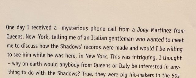 I knew that Roberto was ill, with the same long-term disease that had carried off his father Nando, but he was always on top of the situation, attending hospital in Florence for blood transfusions and other treatments. It was impossible to think of him as a victim in any way. We were last together in France during the spring of 2006, at Rambouillet and Paris, the first of those places hosting a "conference" of Shadows fans and players intent on learning how "That Sound" had been produced. I spoke to Roberto several times by phone over the next few weeks and things did not sound good. He had been in hospital but was allowed home (where he took my last call).